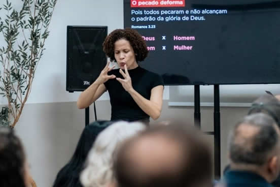 Até que me vi numa situação onde um visitante surdo apareceu na igreja que eu frequentava e ali me dispus a interpretar o culto para ele. Então, em 2019 decidi voltar a estudar Libras ao entender que era o direcionamento de Deus pra mim.